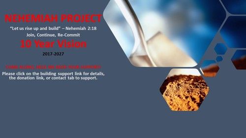“Let us Rise Up and Build” (Neh. 2:18). The Nehemiah Project is Linwood Church of Christ's 10-year plan of action to build upon the spiritual past and establish a solid foundation for the present and future. We are seeking to accomplish this via a seven-point focus; Spiritual & Character Development, Financial Stability, Outreach, Retention, Linwood Community Initiative, Continual Facility Upgrade, Continual Developing Leadership and Succession.